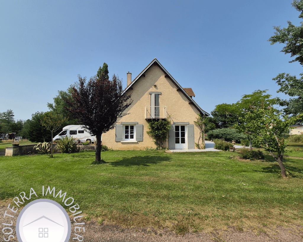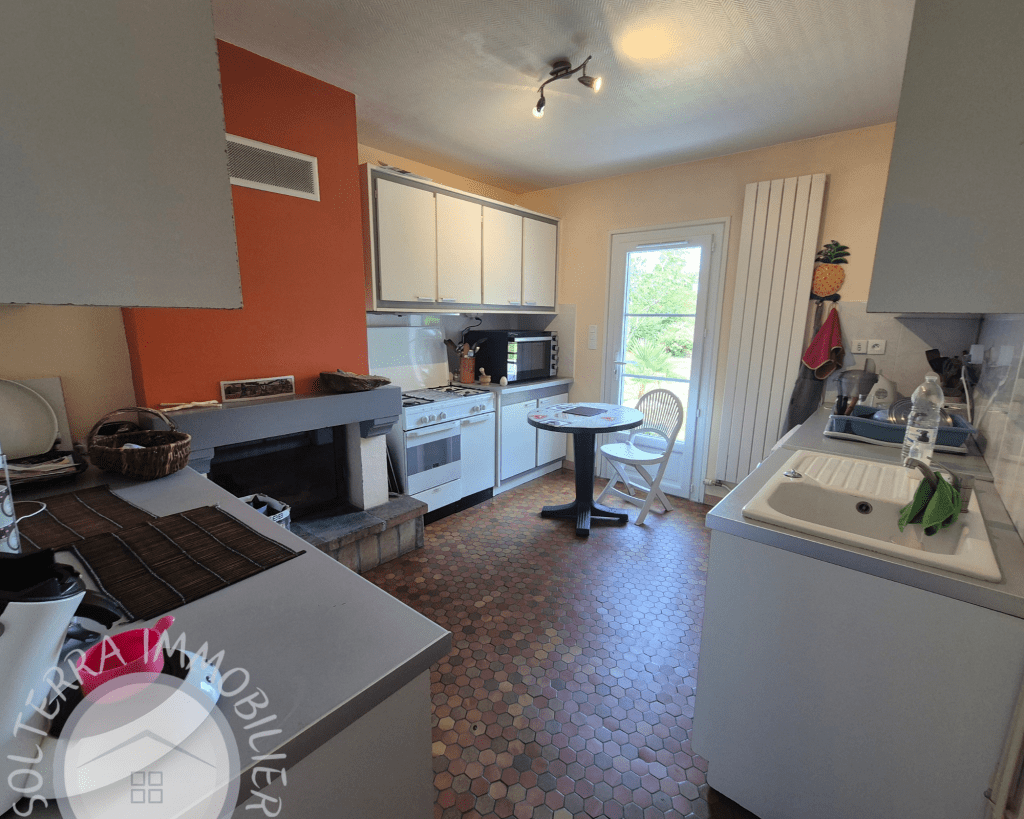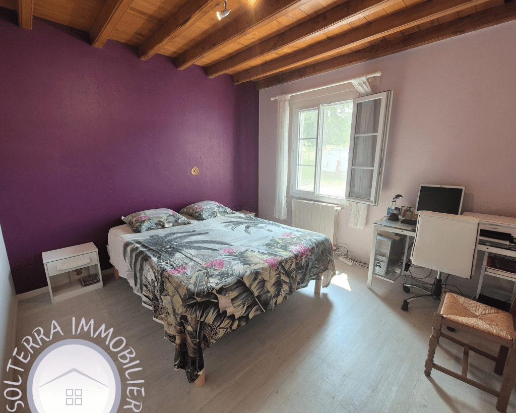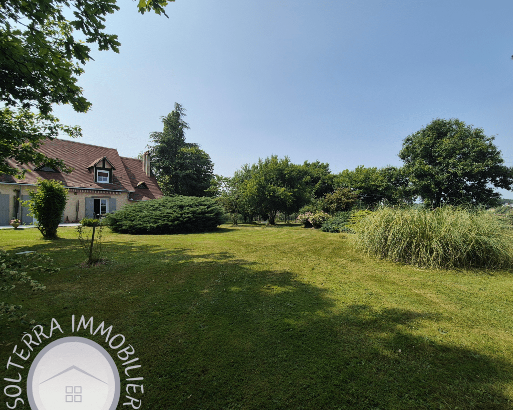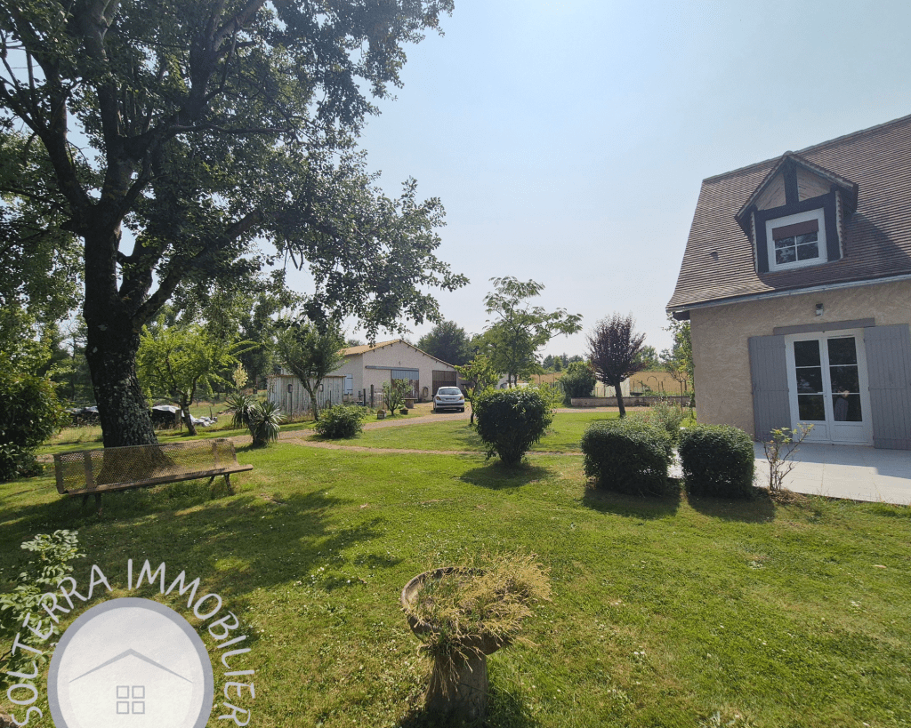 À l’extérieur, profitez d’une grande terrasse ensoleillée accessible depuis la cuisine, le séjour et l’arrière-cuisine, parfaite pour vos repas d’été. Le terrain de 3475 m², entièrement clôturé et arboré, comprend un portail électrique, un potager et une petite mare à poissons. Il y a la possibilité d’acheter en plus une grande dépendance de 160 m² avec environ 2 740m² de terrain constructible.