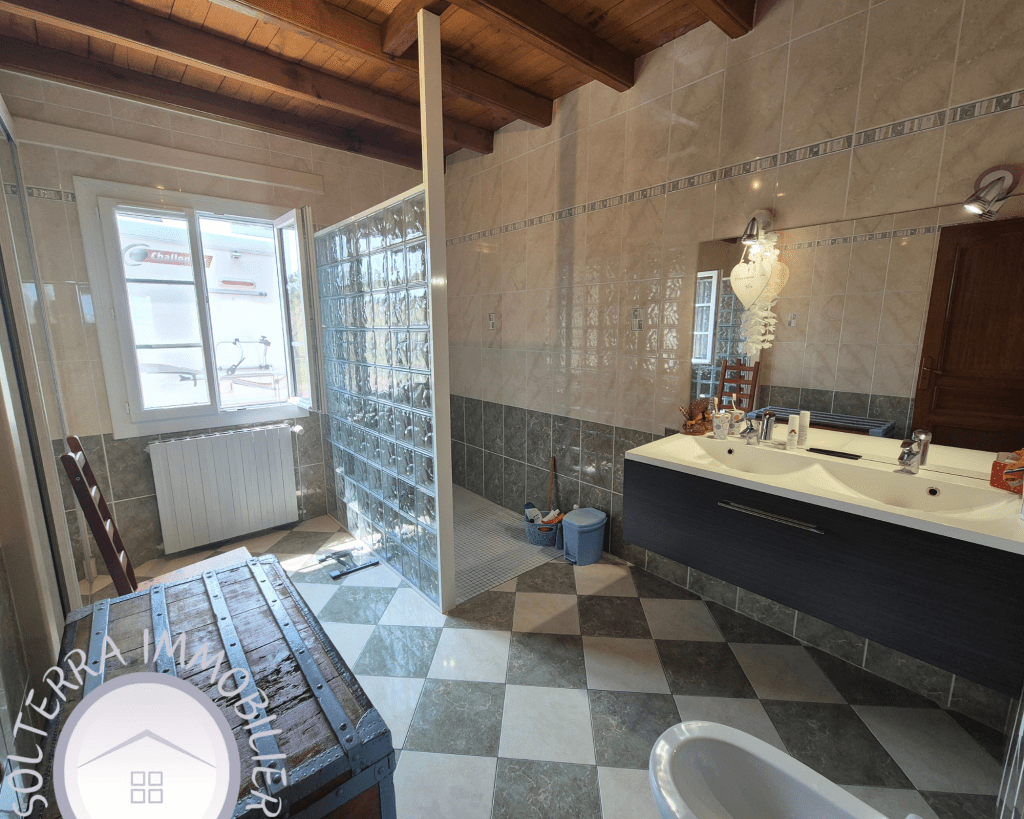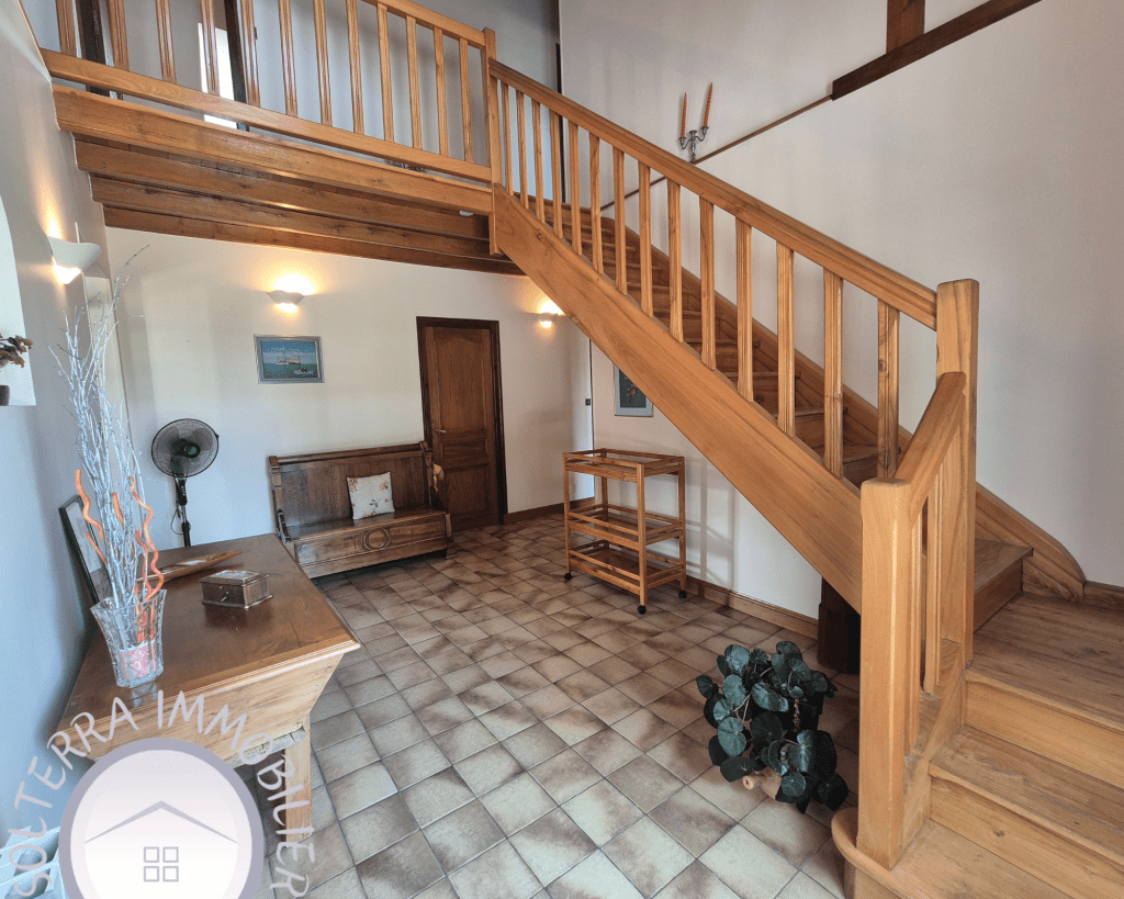 À l’étage, vous trouverez trois chambres spacieuses, une deuxième salle d’eau, un toilette séparées, ainsi qu’une mezzanine lumineuse, idéale pour un bureau ou une salle de jeux.